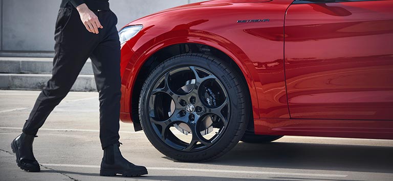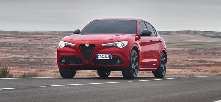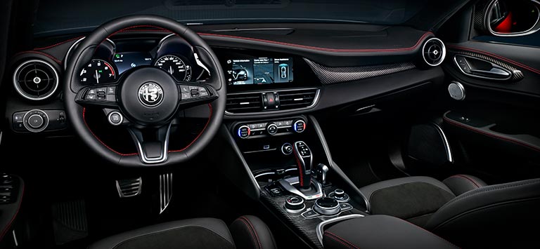 Consommation de carburant Giulia Estrema gamme (l/100 km) : 5,5 - 8,1; CO₂ émission (g/km) : 145 -184.Consommation de carburant Stelvio Estrema gamme (l/100 km) : 6,3 - 8,8 ; CO₂ émission (g/km) : 164 - 199. Valeurs d'homologation déterminées sur la base du cycle combiné WLTP, actualisé au 26.05.2021 .Les valeurs indiquées sont à des fins de comparaison.