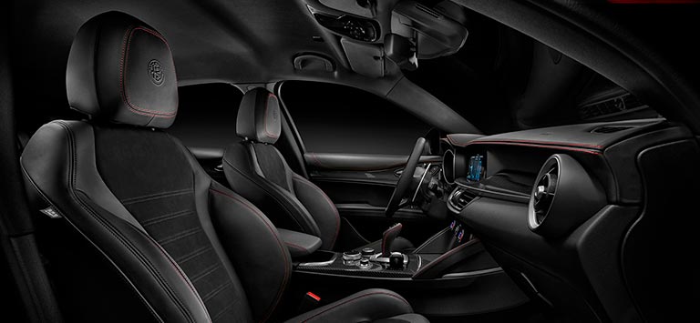 Leur élégance raffinée et leur tempérament passionné donnent vie aux versions haut de gamme Giulia et Stelvio Estrema.