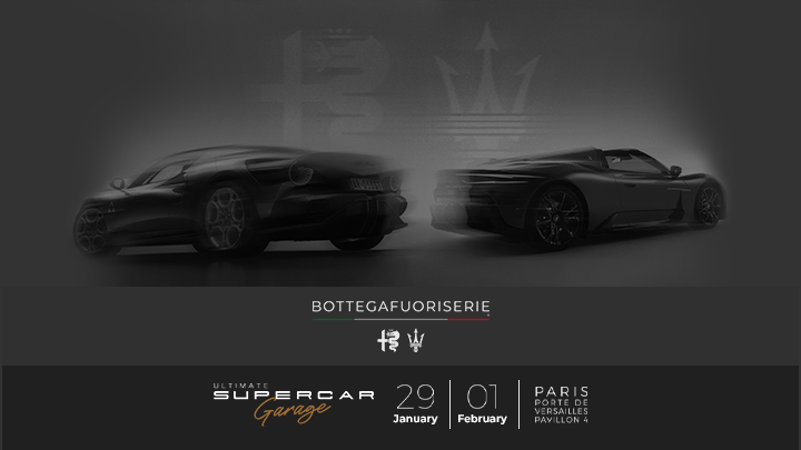 BOTTEGAFUORISERIE fait sa première apparition publique à l’Ultimate Supercar Garage, le nouvel événement dédié aux supercars contemporaines, organisé lors de la 50ᵉ édition de Rétromobile au Paris Expo Porte de Versailles, du 29 janvier au 1ᵉʳ février 2026. Sur ce prestigieux podium, Alfa Romeo et Maserati occupent le devant de la scène, réunies par un projet visionnaire qui concentre l’excellence des deux marques italiennes dans un univers créatif unique.