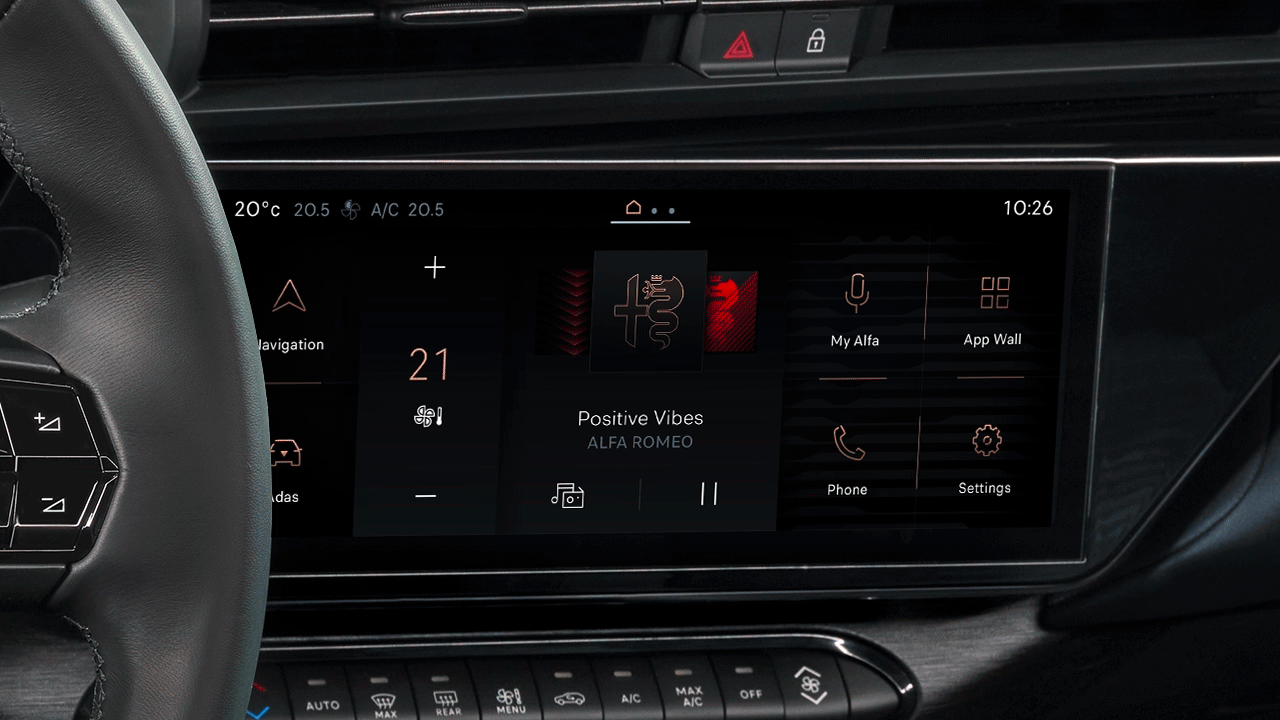 Bienvenue dans les services connectés Alfa Connect Services, un univers surprenant où sont concentrées de nombreuses solutions technologiques, une application mobile, ainsi qu'un site web, chacunes destinées à vous aider à contrôler votre Alfa Romeo, à distance et en temps réel. Avec Android Auto™ et Apple CarPlay, profitez de voyages entièrement connectés. Avec l'application mobile My Alfa Connect, bénéficiez d'une large gamme de services connectés et rendez vos trajets encore plus mémorables.